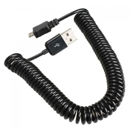 Gekrulde micro USB naar USB kabel - 3 meter - zwart